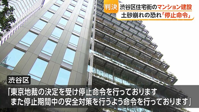 東京・渋谷区で進められているマンション建設をめぐって東京地裁は、区に対し施工業者に工事を停止させるよう仮の命令を出した。