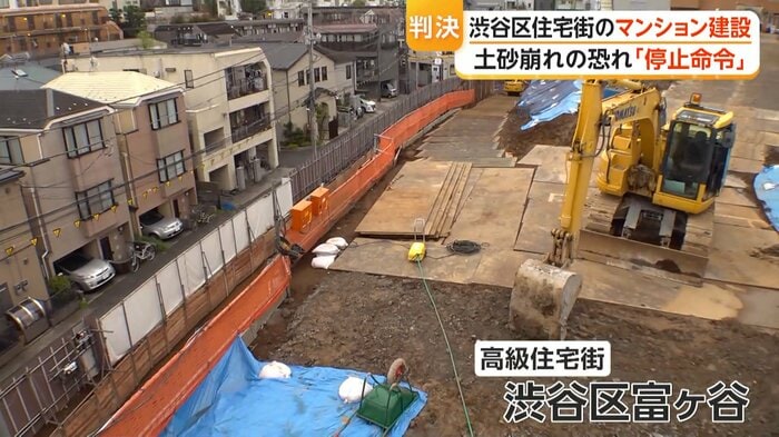 東京・渋谷区富ヶ谷で進められていたマンション建設工事について、東京地裁が渋谷区に対し工事の停止命令を仮に出すよう命じた。周辺住民の申し立てを受けたもので、がけ崩れや土砂流出による災害の恐れがあると指摘、区は6日に施工業者に対し工事の一時停止を命令した。
