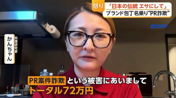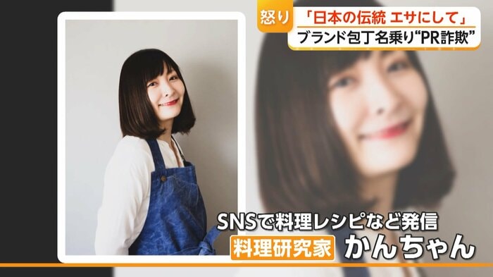 被害を訴えるのは、SNSで料理レシピなどを発信する料理研究家「かんちゃん」。2025年大阪・堺市の刃物店を名乗るアカウントから「包丁をPRする動画制作」の依頼が来たという。