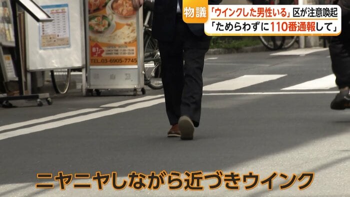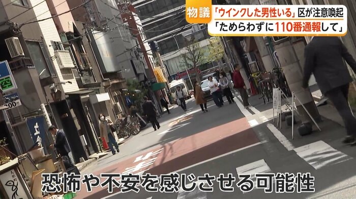 ウインクした男性を「不審者」として通報を呼びかける異例の内容だ。