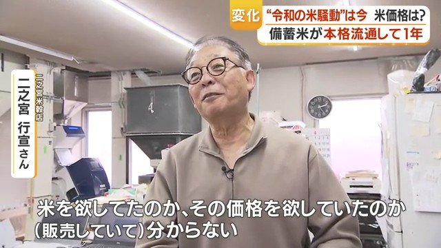 店主の二之宮行宣さんはこう振り返る。「(備蓄米)そんなにみんな欲してたのって。米を欲してたのか、その価格を欲していたのか、(販売していて)わからない」