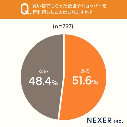 ■51.6%が、紙袋やショッパーを「再利用したことがある」と回答