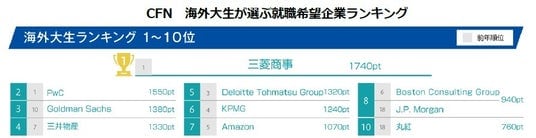 ・CFN 海外大生が選ぶ就職人気企業ランキング