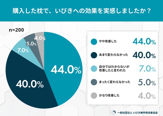 → 「かなり改善」「やや改善」「自分ではわからないが言われた」を合わせると、55.0%が改善を実感しています。一方で、45%は変化を感じておらず、枕による対策には個人差や「相性」が大きく影響していることが推測されます。