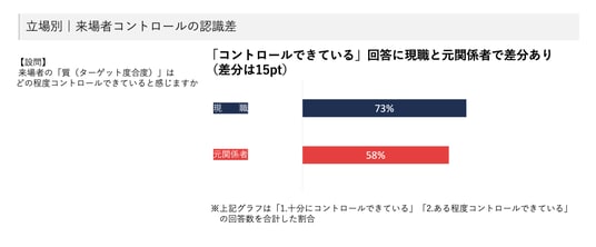 来場者コントロールにおいても約15ポイントの認識差(現職約73%、元関係者約58%)