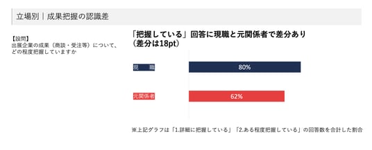現職と元関係者で約18ポイント差、成果把握の認識にギャップ(現職約80%、元関係者約62%)