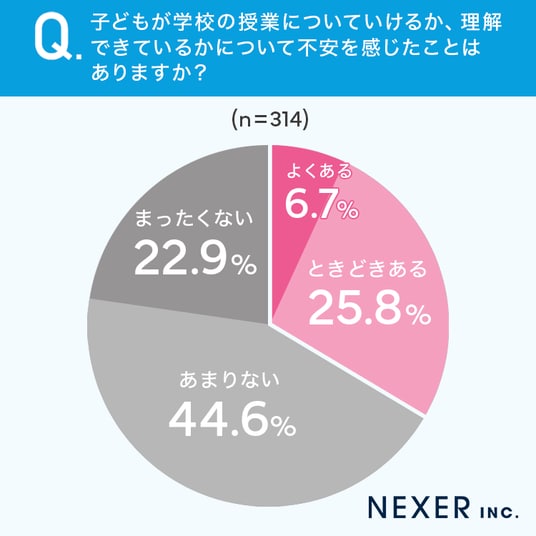 続いて、子どもが学校の授業についていけるか、理解できているかについて不安を感じたことがあるか聞いてみました。