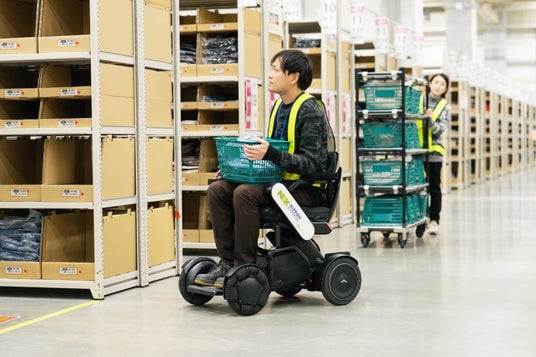 本実証は、WHILL社が厚生労働省自立支援機器実証・普及支援モデル事業(「自立支援機器を活用する就労支援プロジェクト」主催:テクノエイド協会)の補助を受け、「倉庫環境におけるモビリティ支援機器導入の効果に関する評価」として実施しました。