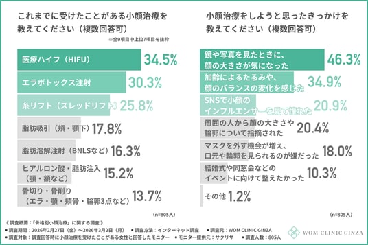 そこで今回、WOM CLINIC GINZA(https://wom-clinic.com/)は、小顔治療を受けたことがある女性を対象に、「骨格別小顔治療」に関する調査を行いました。