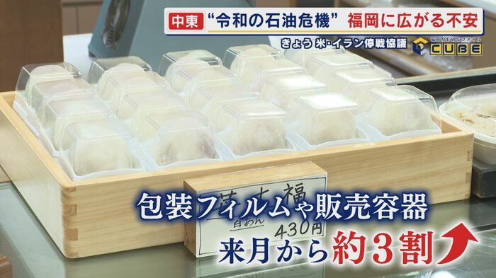 創業90年の老舗和菓子店『蛸松月』では、商品を包装するフィルムや販売用の容器の仕入れ価格が、5月から約3割上昇するうえ、今後の調達も困難な状況となっている。