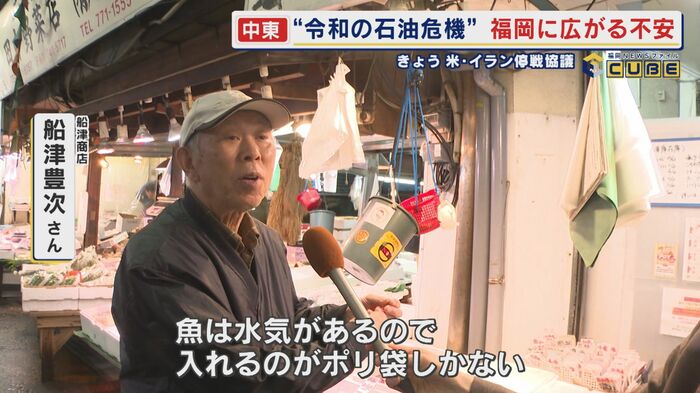 鮮魚店『船津商店』の船津豊次さんは「魚店は袋代を請求しない。魚は水気があるので入れるのがビニール袋しかない。サービスだからなかなか厳しいですよ」と話す。