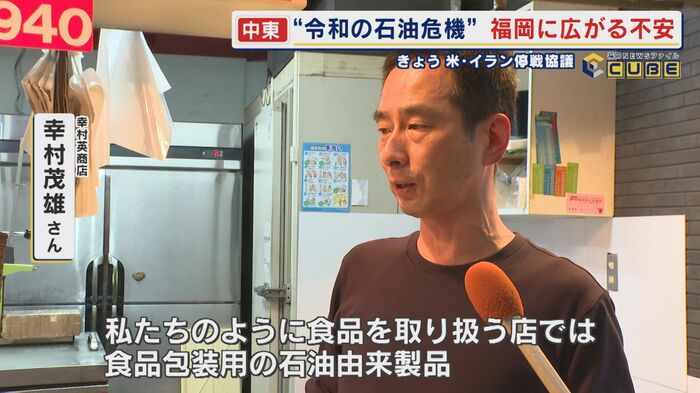 明太子や鯨肉などを中心に扱う『幸村英商店』の幸村茂雄さんは「私たちのように食品を取り扱う店では、食品包装用のビニール製品。5~6月頃から仕入れの値段を上げさせてもらうと説明を受けた。上がり幅は10%から30%」と話す。