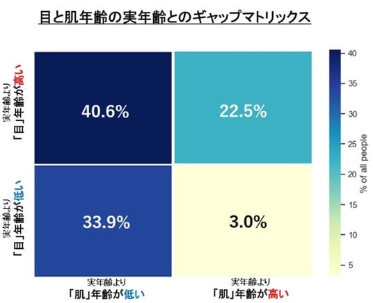 トピックス5. 目年齢と肌の若さには相関あり!肌は若いのに「目」年齢が高い方が4割。