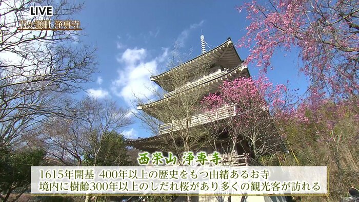 この寺のシンボルとなっているのが、境内にそびえ立つしだれ桜だ。