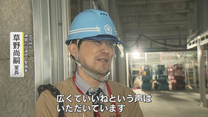 「市場の皆さんも中を見て頂いたんですけど、『高さもあって、圧迫感なくて広くていいね』という声は頂いてます」と『北九州市神嶽川旦過地区整備室』の草野尚嗣室長が内部を案内する。