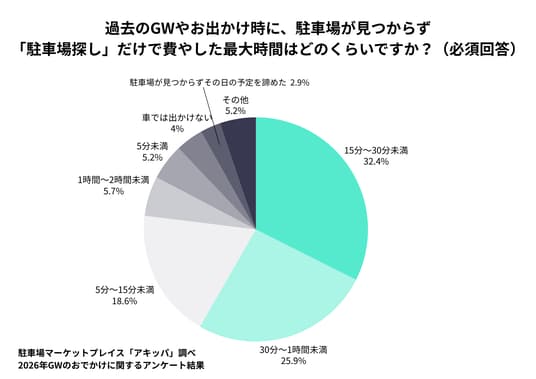 過去のGWやお出かけ時に、駐車場が見つからず「駐車場探し」だけで費やした最大時間はどのくらいですか?(必須回答)