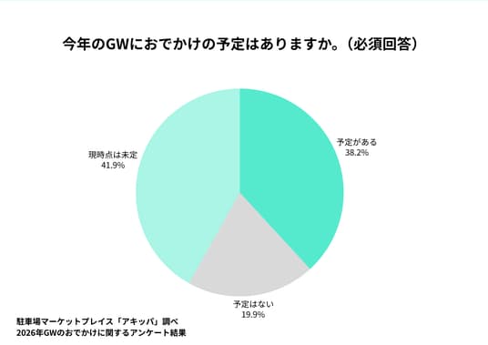 今年のGWにおでかけの予定があるか聞いたところ、「現時点は未定」(41.9%)が最多という結果になりました。