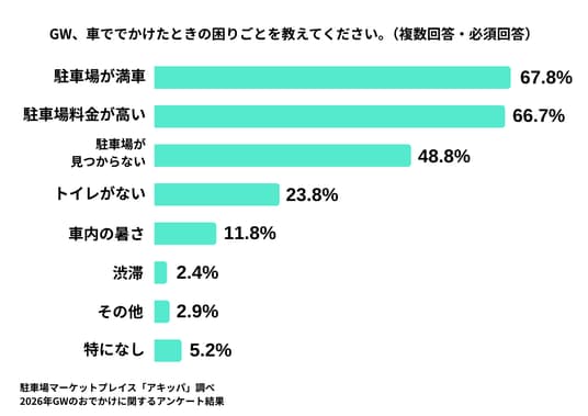 GW、車ででかけたときの困りごとを教えてください。(複数回答・必須回答)