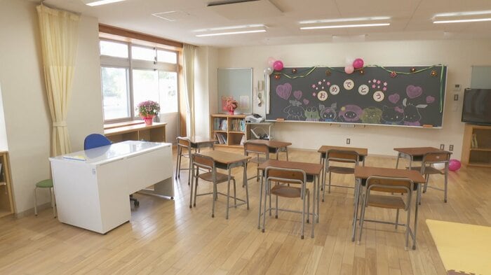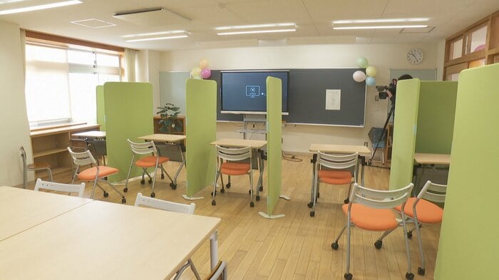 古志はるかぜ学園は、閉校した浜黒崎小学校の校舎と設備を活用する小中一貫校だ。通学区域は富山市全域で、1期生は36人。登校時間は午前9時半で、年間の授業時間数も通常より1割ほど減らし、ゆとりをもって学べるカリキュラムを編成している。校内には休憩できる部屋や個別学習スペースなど、安心して過ごせる環境も整備された。