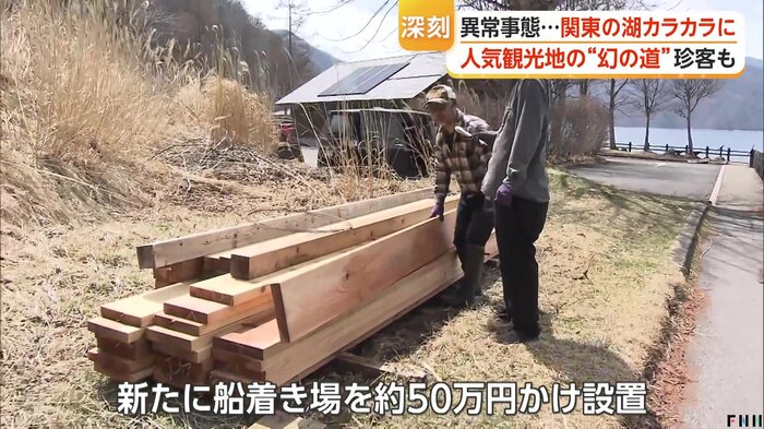 20日のボート釣り解禁を控えるこの店では、水のある新たな場所に船着き場を約50万円かけて設置するという。
