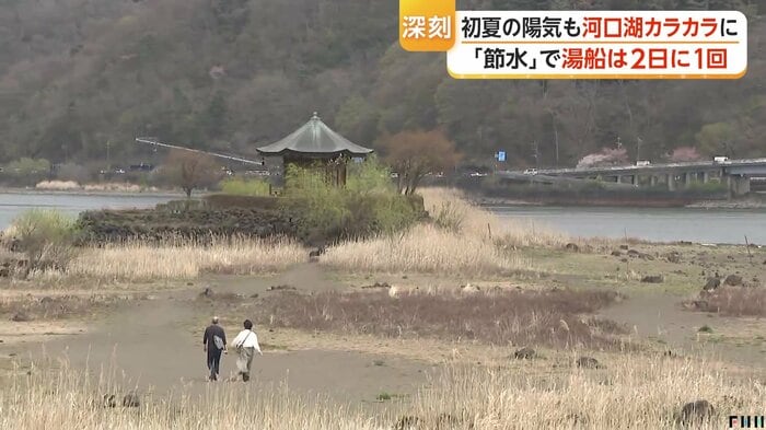 全国的に気温が上昇し初夏の陽気となった13日、カラカラの湖は山梨県にもあった。