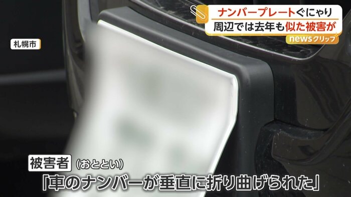 札幌市の集合住宅の駐車場でナンバープレートが垂直に折り曲げられる被害が相次いだ。周辺では去年も同様の被害が起きていて、住民からは不安の声も出ている。