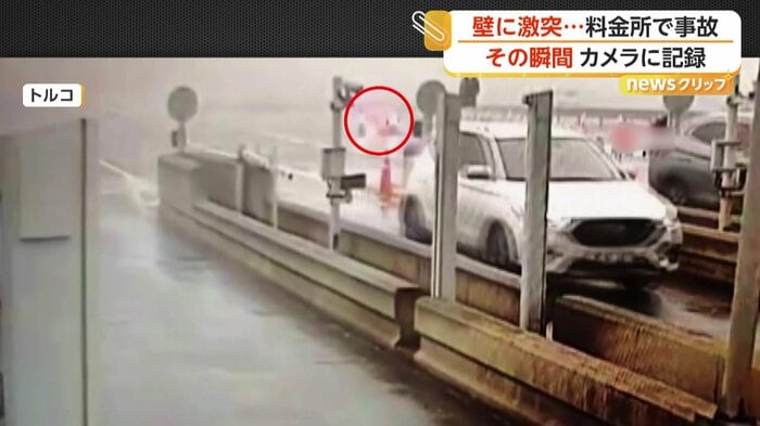 トルコで、高速道路の料金所の壁に激突する車が撮影カメラに捉えられた。当初、車はゲート手前で進路を変更し、事故を起こしていた。運転手もけがをして病院に搬送されたという。