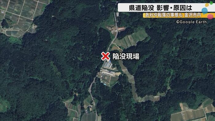 陥没事故が発生したのは、石川県金沢市二俣町にある県道211号。森本方面と二俣方面をつなぐこの道路は、地元住民にとって欠かせない生活路線である。