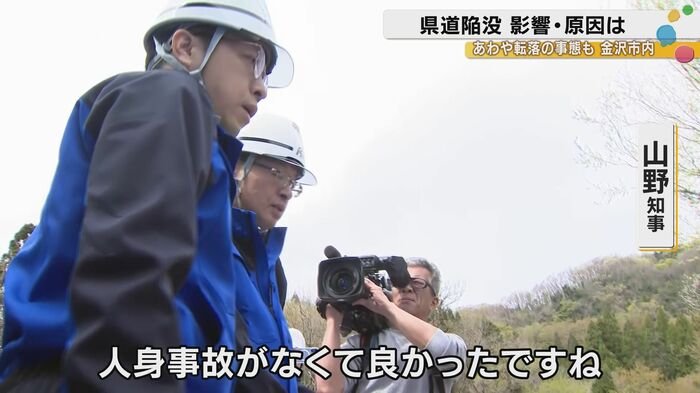 説明を受けた際、山野知事はまず「人身事故がなくて良かったですね、ほんとに」と口にした。一台の車がパンクし、直後に道路が崩落したという状況を考えれば、人的被害が出なかったのは不幸中の幸いだった。