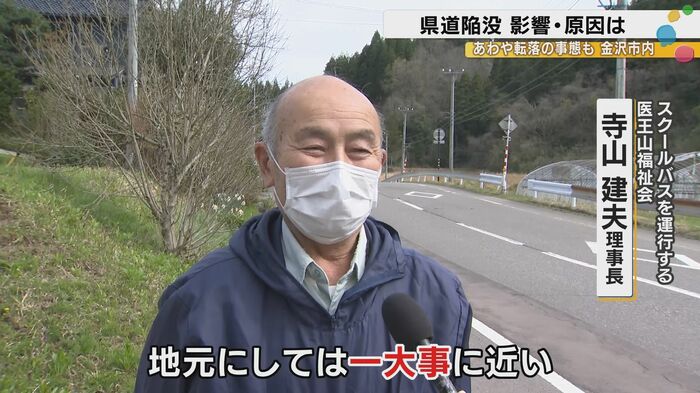スクールバスを運行する医王山福祉会の寺山建夫理事長も状況を語った。「今回のことで回り道しないかんもんですから、時間的なことがちょっと気になっていたんですけど、8時20分かからんくらいまでに入りましたんで。ほっとしてるとこなんです」。そして、こう続けた。「地元にしてはちょっと一大事に近い。農道とかね、回れば回り道あるんですけど、もちろん大きな車は通れませんし。なるべくなら早めに復旧をしていただきたいなっちゅうのが、地元の願いですね。」
