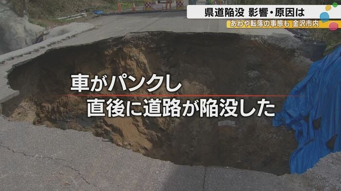 『車がパンクし、直後に道路が陥没した』