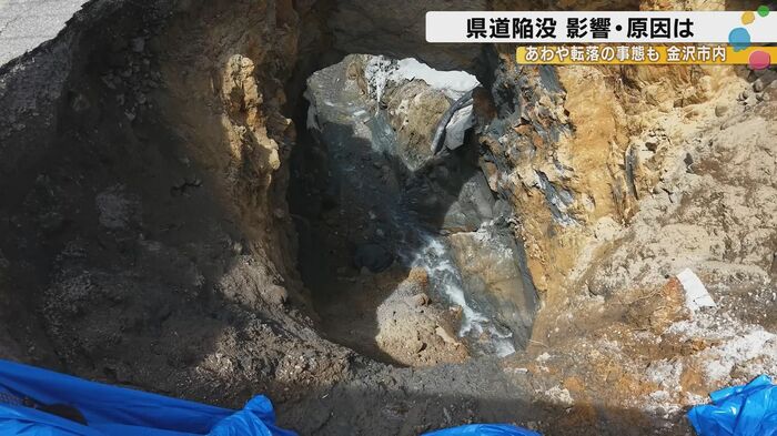 警察が現場に駆けつけると、道路には大きな穴が開いていた。実はこの道路、今回が初めての異変ではなかった。地元住民などによると、2024年1月の能登半島地震でひびが入っていたという。そして、今年1月、今回崩落した部分とは反対側の道路が崩落。モルタルなどで補修を施した上で片側交互通行となっていたのだ。