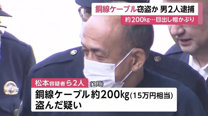 松本広幸容疑者(61)ら2人は2026年1月、茨城県古河市で、電気工事会社のトラックの荷台から銅線ケーブル約200キロ、15万円相当を盗んだ疑いが持たれている。