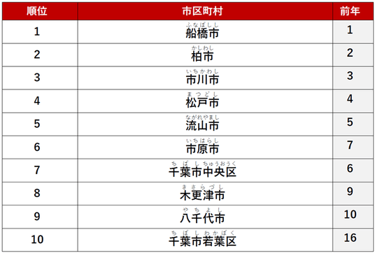 2位に「市川市」、3位に「松戸市」がランクインしました。