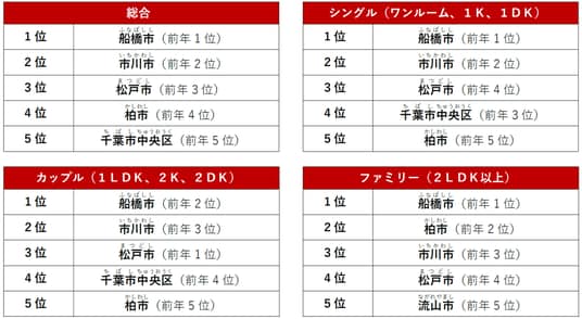 「アットホーム 賃貸・街ランキング 千葉県編」 調査結果
