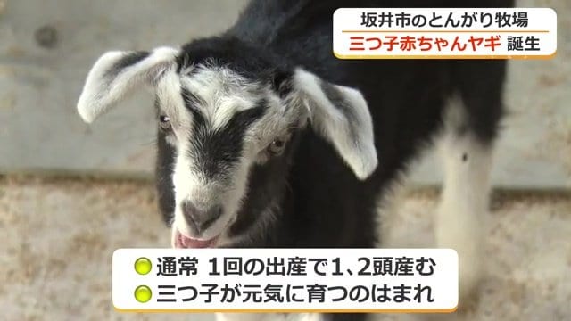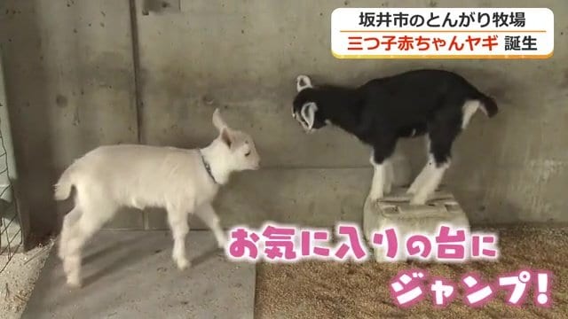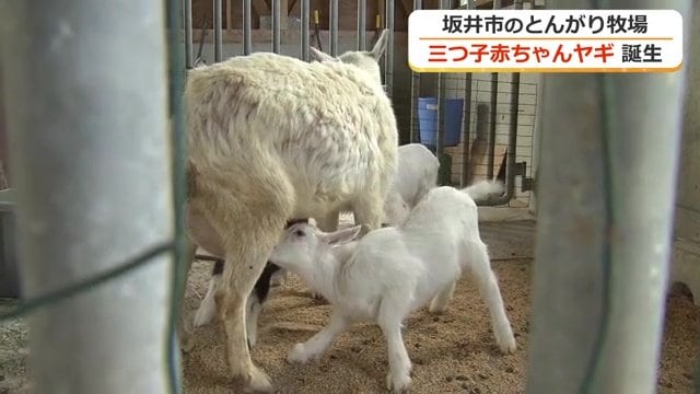 福井・坂井市の「なかよしとんがり牧場」に三つ子のヤギが誕生し、すくすくと成長している。