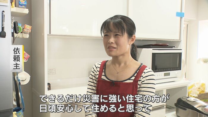 住人の女性は、中古で住宅を購入するタイミングで耐震診断を受けることに決めた。「以前、地震で夜半に凄い揺れで飛び起きて…あの時の不安は強く記憶に残っている。できるだけ災害に強い住宅の方が、日頃安心して住めると思って」と話す。