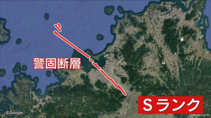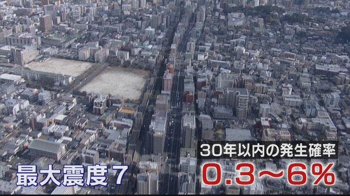 警固断層地震は、国が示す分類で、最も危険度が高い『Sランク』。最大震度7の揺れが予想され、今後30年以内の発生確率は0.3%から6%と予測されている。