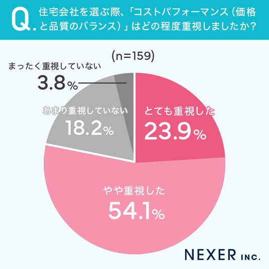 最後に、住宅会社を選ぶ際に「コストパフォーマンス(価格と品質のバランス)」をどの程度重視したか聞いてみました。