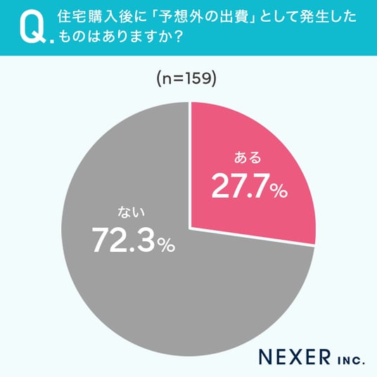 ■27.7%が、住宅購入後に「予想外の出費があった」と回答