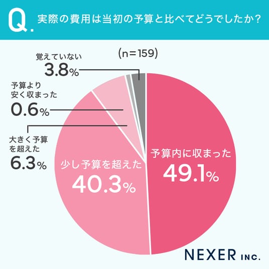 続いて、実際の費用は当初の予算と比べてどうだったか聞いてみました。