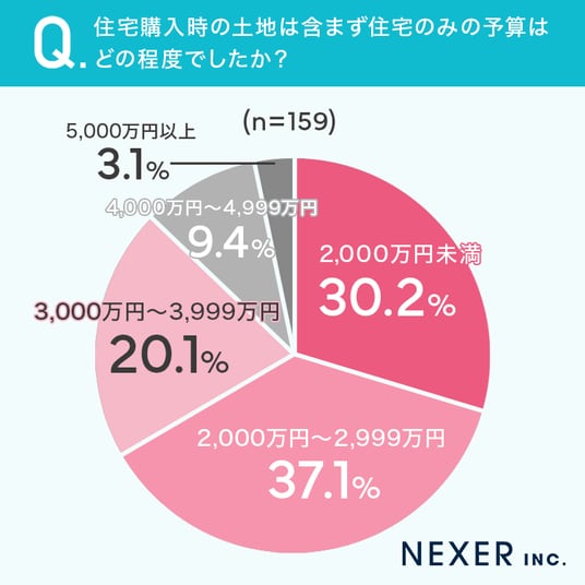 まず、住宅購入時の土地は含まず住宅のみの予算がどの程度だったか調査しました。