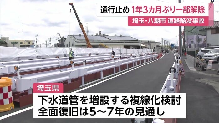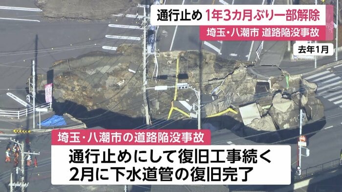 埼玉・八潮市の道路陥没事故をめぐって、現場の県道の通行止めが約1年3カ月ぶりに一部解除された。