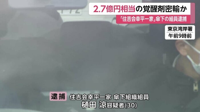 指定暴力団・住吉会幸平一家の傘下組織の組員が、2億7000万円相当の覚醒剤を密輸したとして逮捕された。