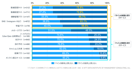 【図3】デジタルサービス利用時に「負担(ペイン)の解消」もしくは「付加価値(ゲイン)の提供」と感じる比率(SA)
