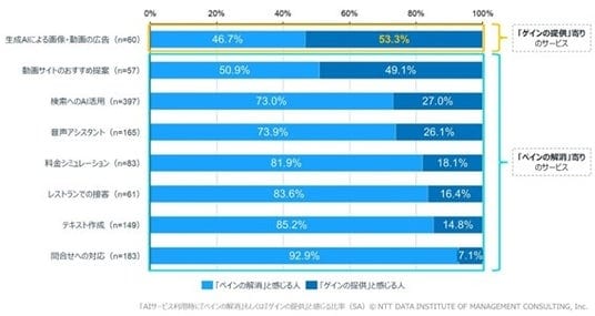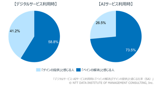 【図1】デジタルサービス・AIサービス利用時に「負担(ペイン)の解消」「付加価値(ゲイン)の提供」と感じる比率(SA)