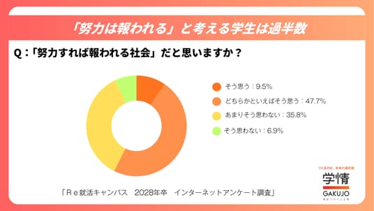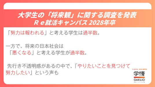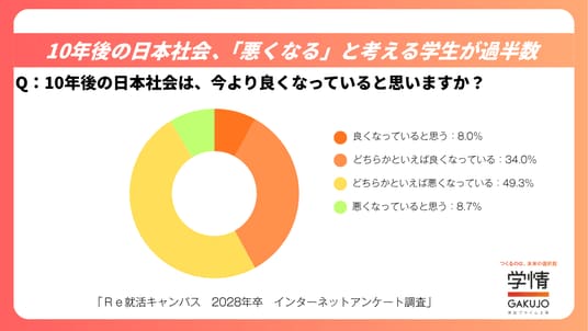 (1)「努力すれば報われる」と考える学生が過半数(2)10年後の日本社会は「悪くなる」と考える学生も過半数に