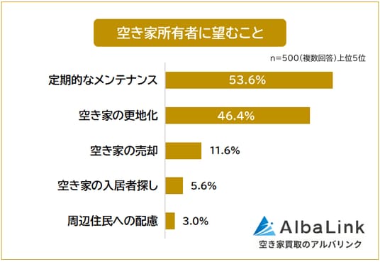 ・空き家所有者に望むことは「定期的なメンテナンス」