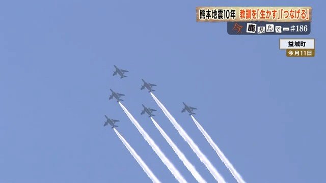 4月11日、熊本市の上空をブルーインパルスが華麗に舞い、白い飛行機雲が一直線に伸びた。それはまるで、地震後も顔を上げて前に進む熊本県民の姿を象徴しているようだった。
