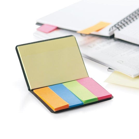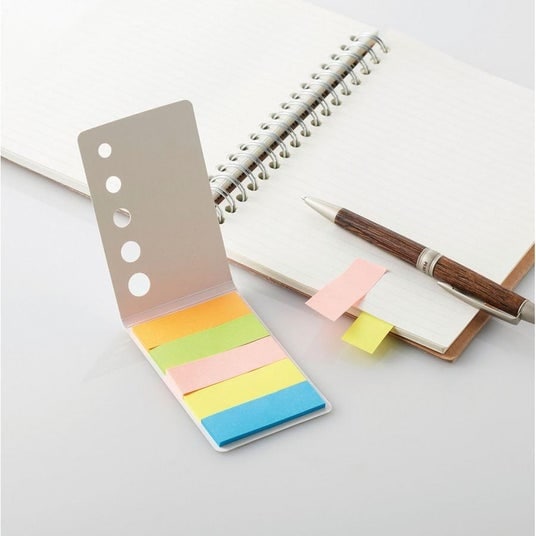 持ち運びに便利なカバー付きの付箋メモ。コンパクトながら複数サイズの付箋を備え、日常業務での使い勝手の良さが支持されています。配布後すぐに使われやすく、企業との接触機会を生みやすいアイテムです。